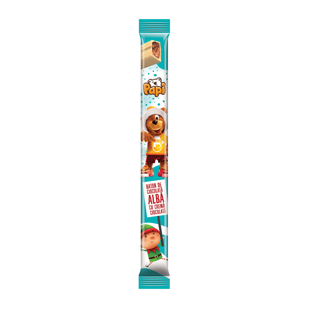 Batonul Papi de ciocolata alba cu crema ciocolata